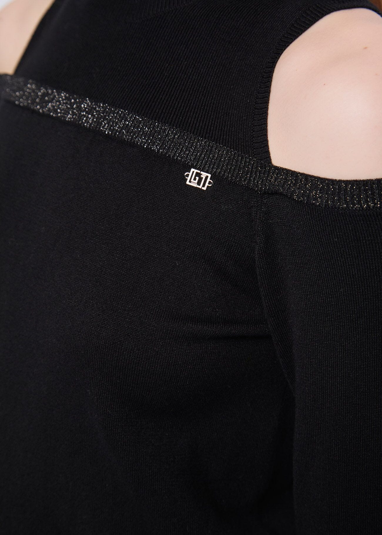 Scegli l'abito in filato con dettagli in lurex, collo alto, motivo cut-out e logo GJ in metallo....