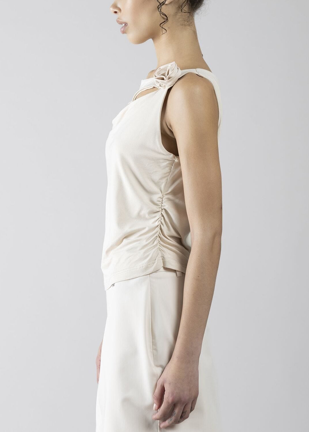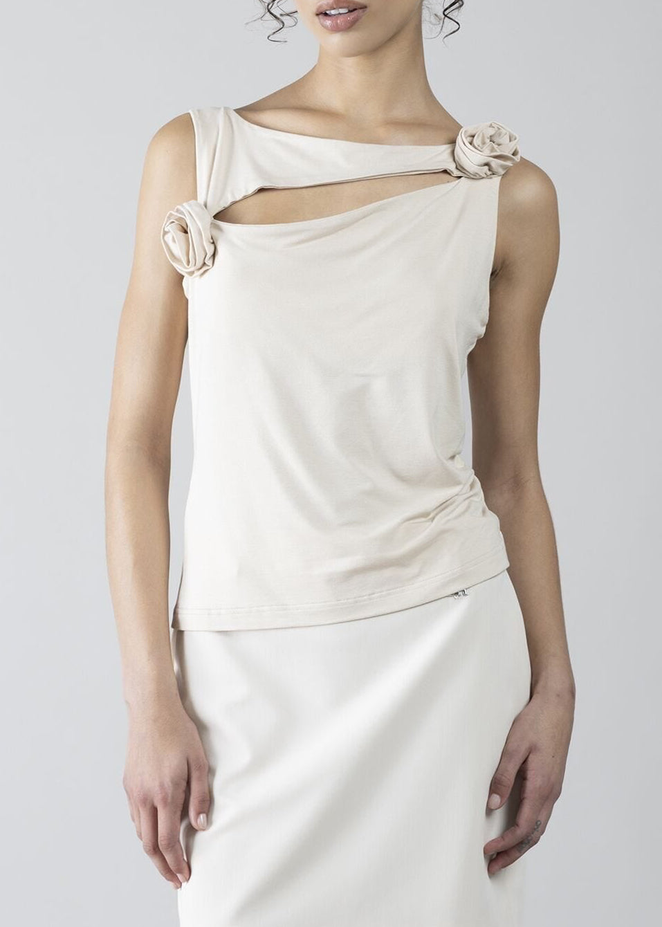 T-shirt senza maniche, canotta, con rose applicate - art. 611DD44009 - Denny Rose Primavera Estate 2026