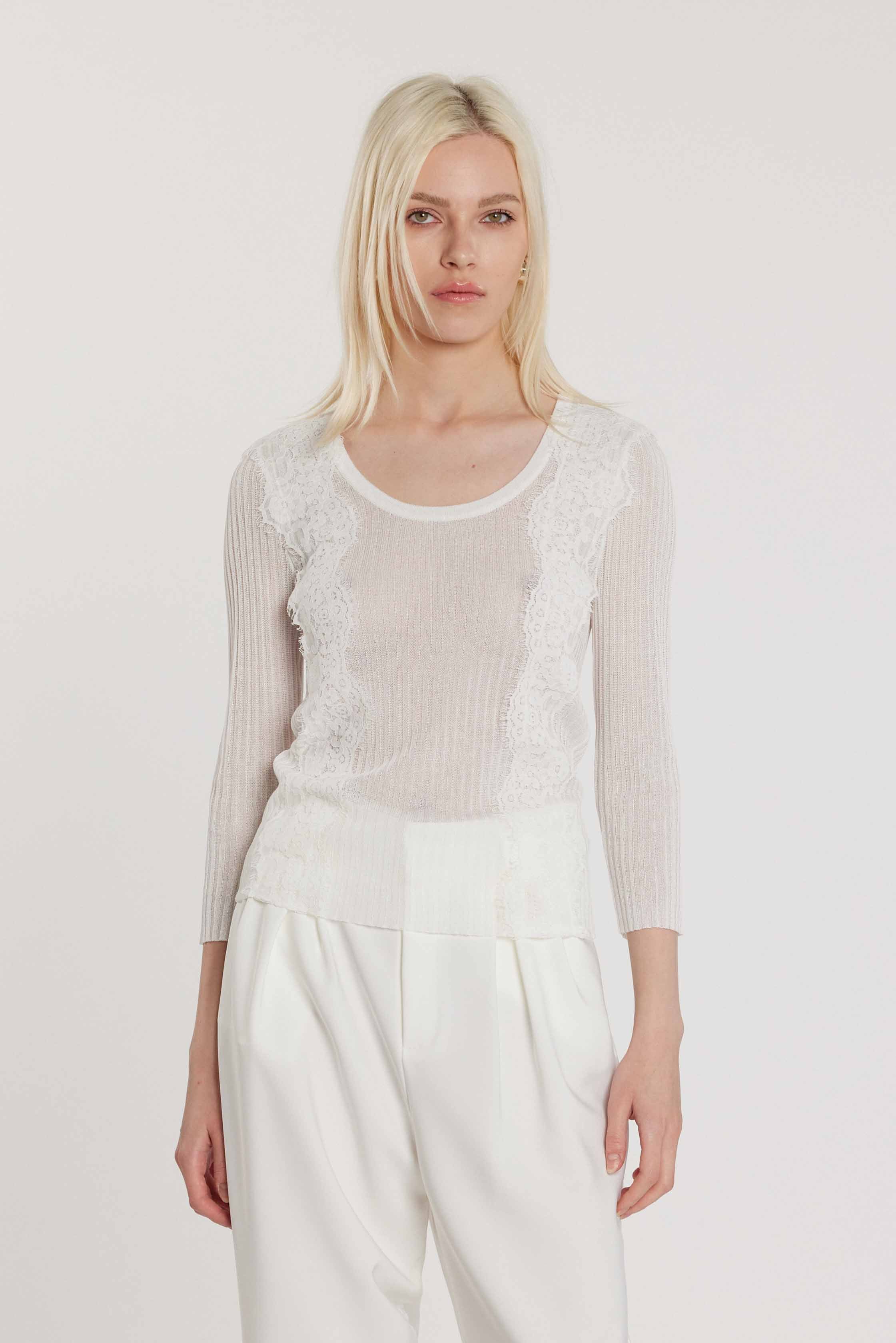 Maglia NOVAC maniche tre quarti scollo alla madonna con inserti pizzo costina