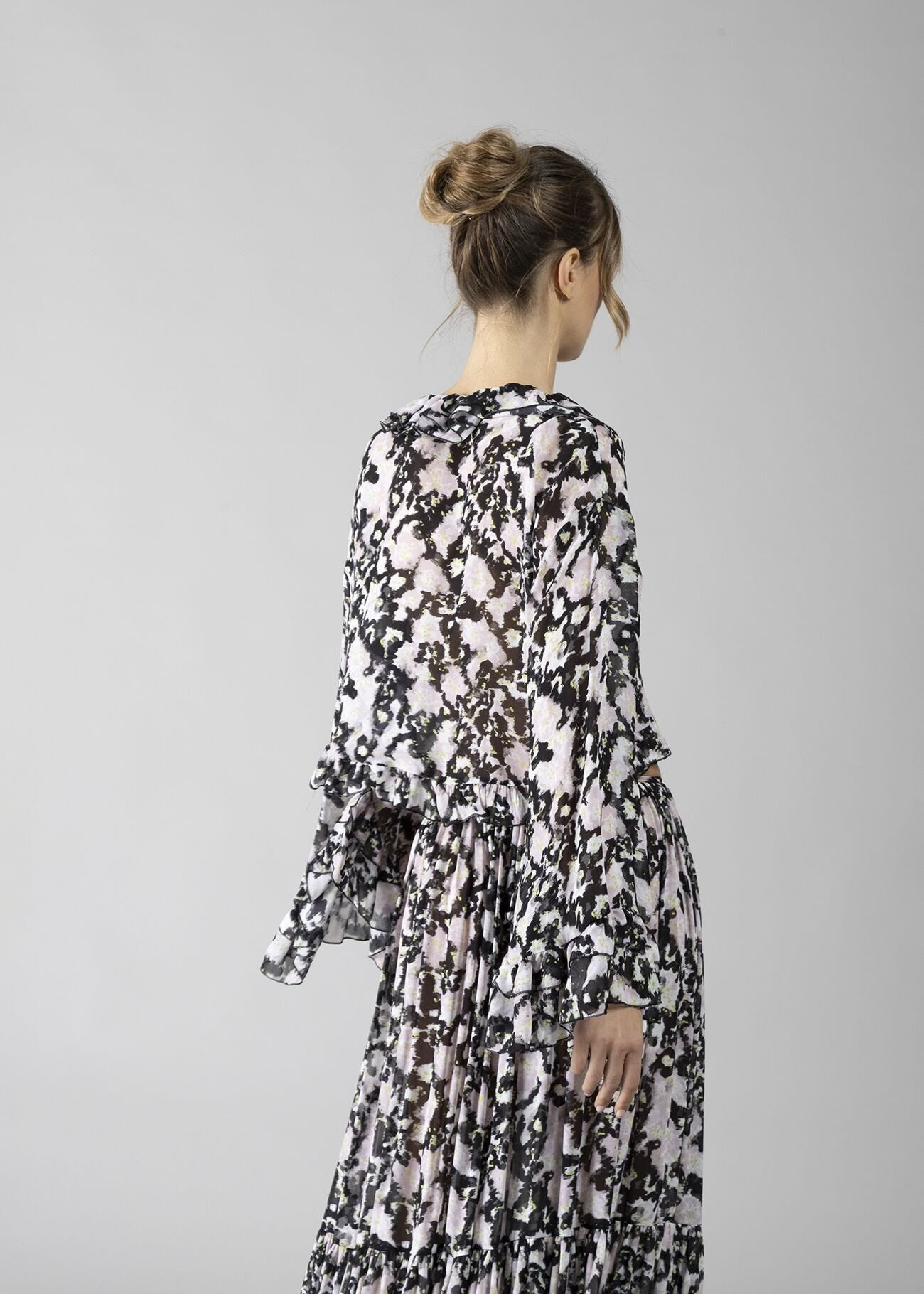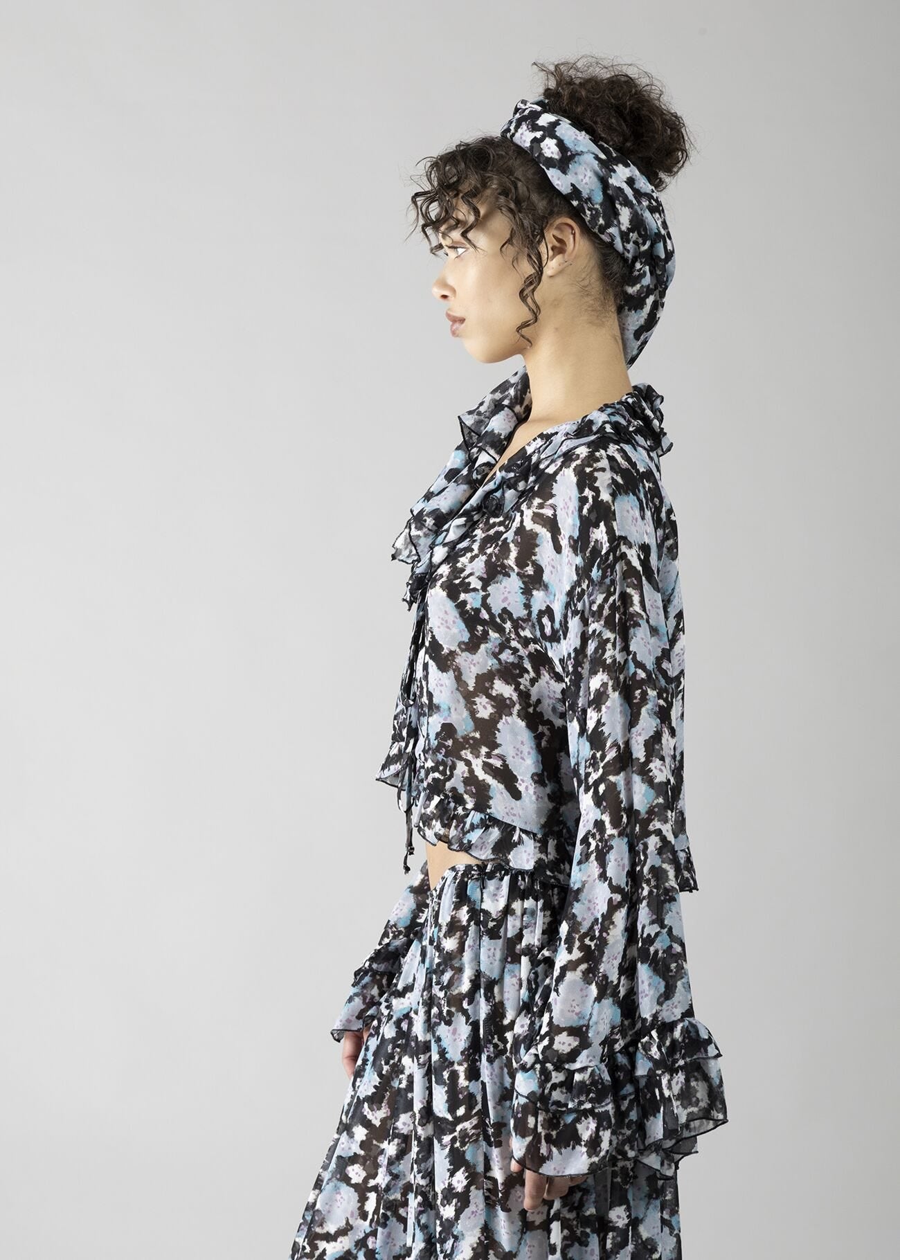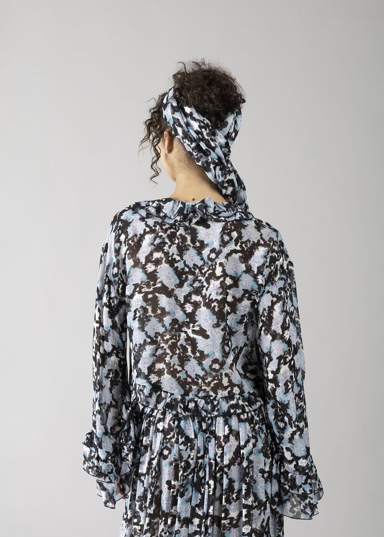Blusa in georgette stampata con rouches sul collo donna - art. 611DD45026 - Denny Rose Primavera Estate...