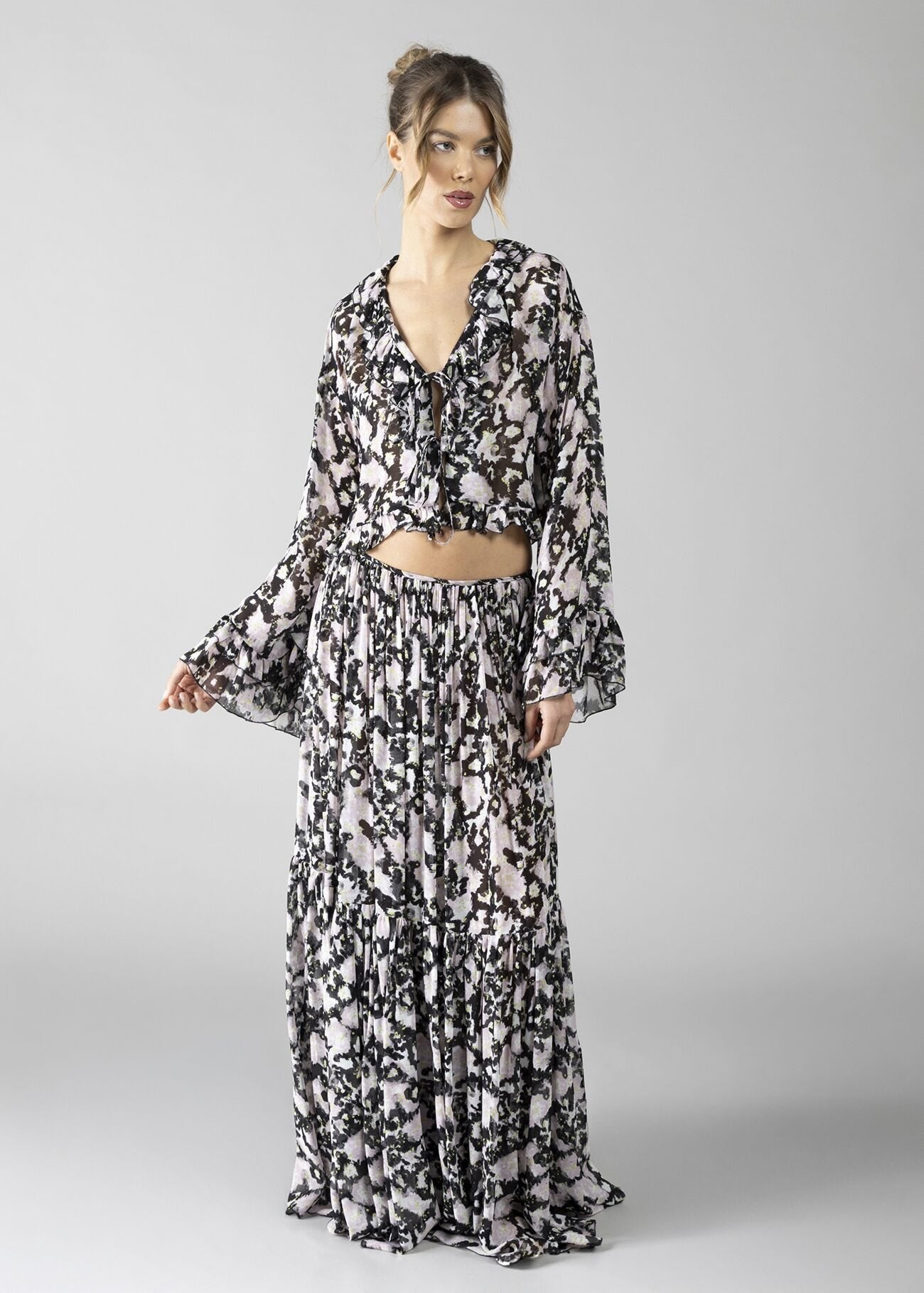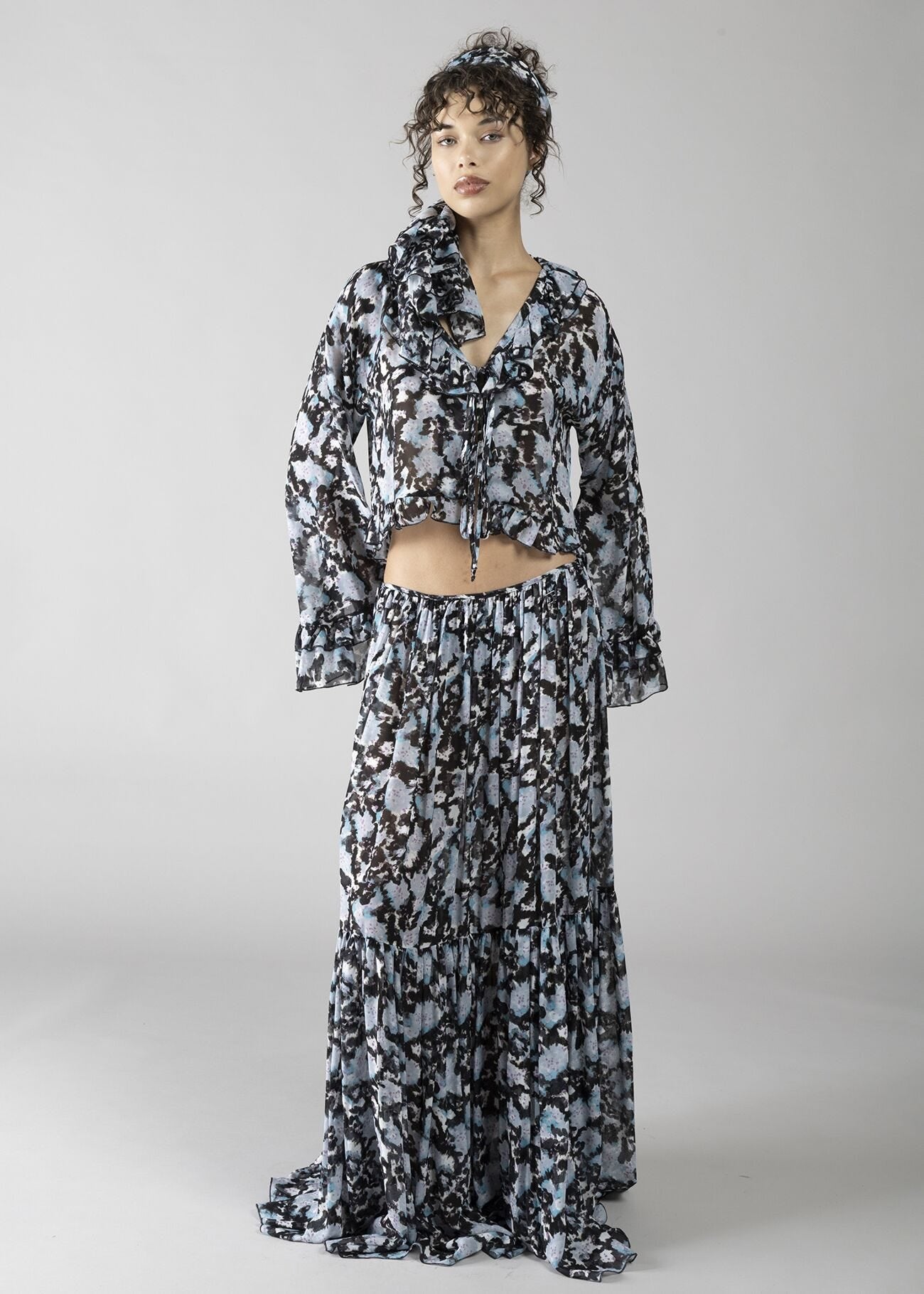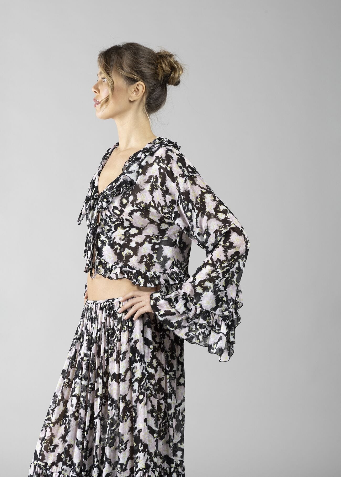 Blusa in georgette stampata con rouches sul collo donna - art. 611DD45026 - Denny Rose Primavera Estate...