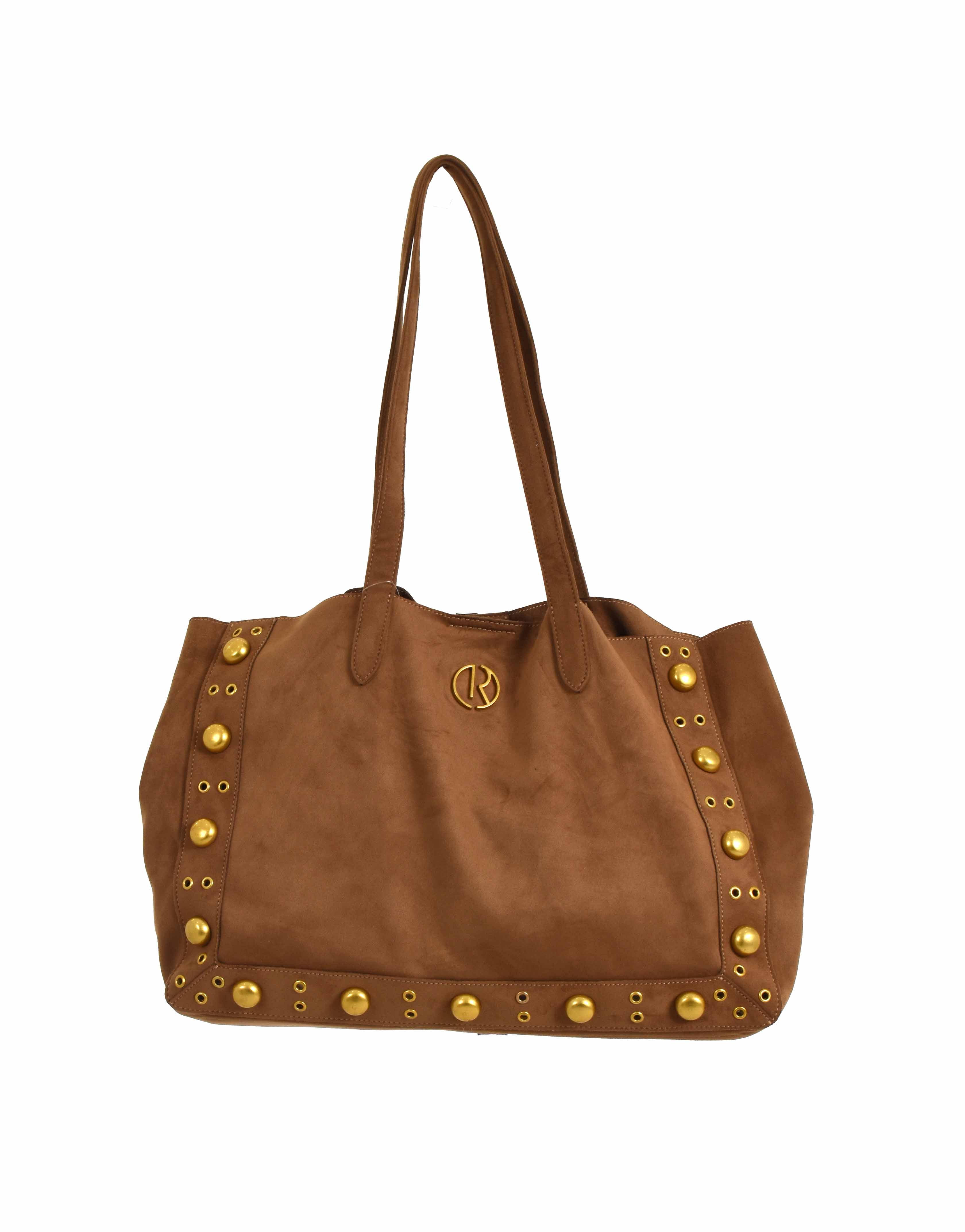 Borsa HARUKA due manici con snap più borchie più occhielli più logo eco-camoscio