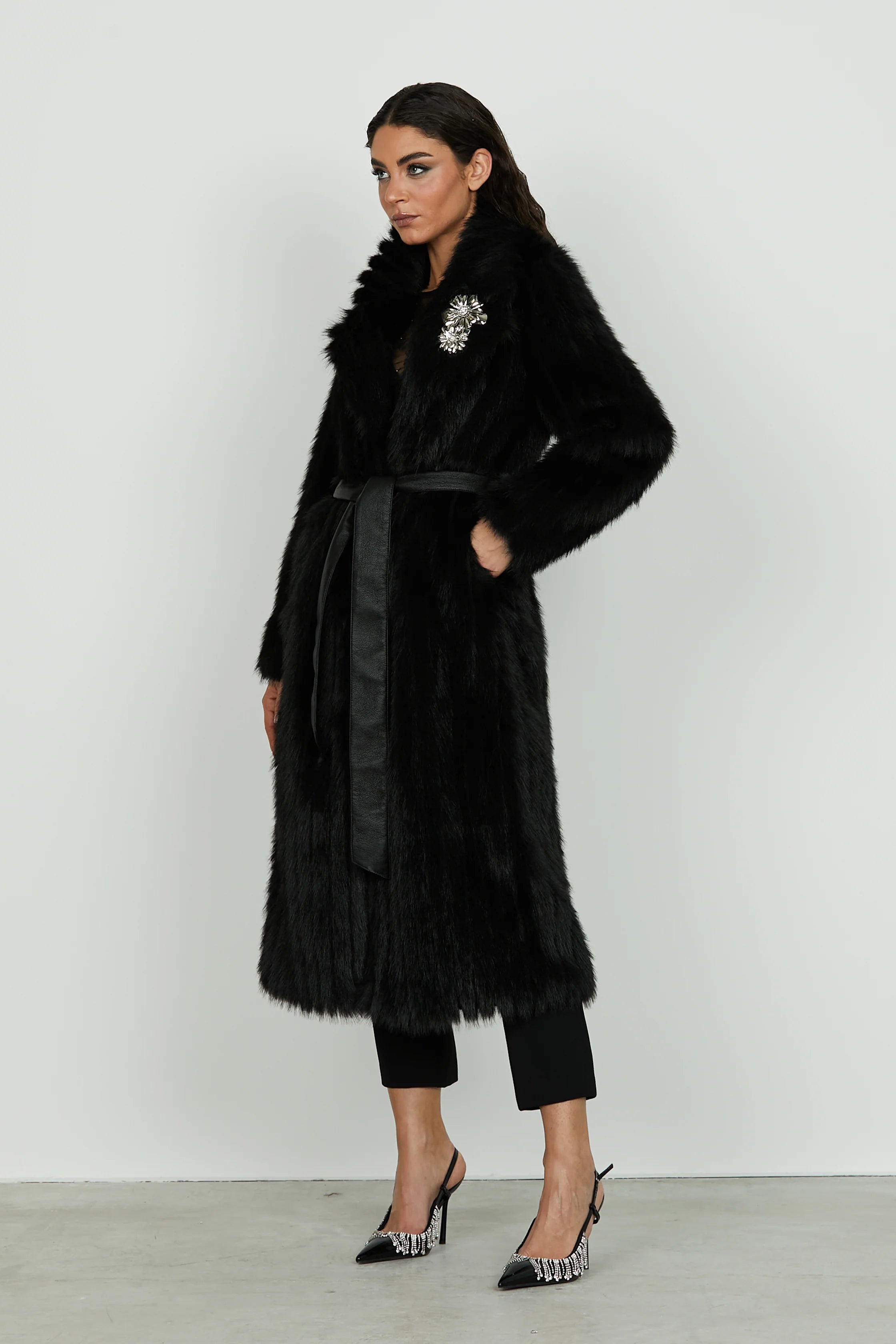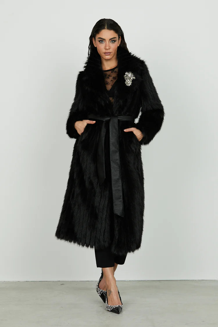 Scopri Ecopelliccia GHENTY manica lunga lunga più cintura più spille ecopelle le Migliori Pellicce della collezione Donna Relish Autunno Inverno 2025/2026