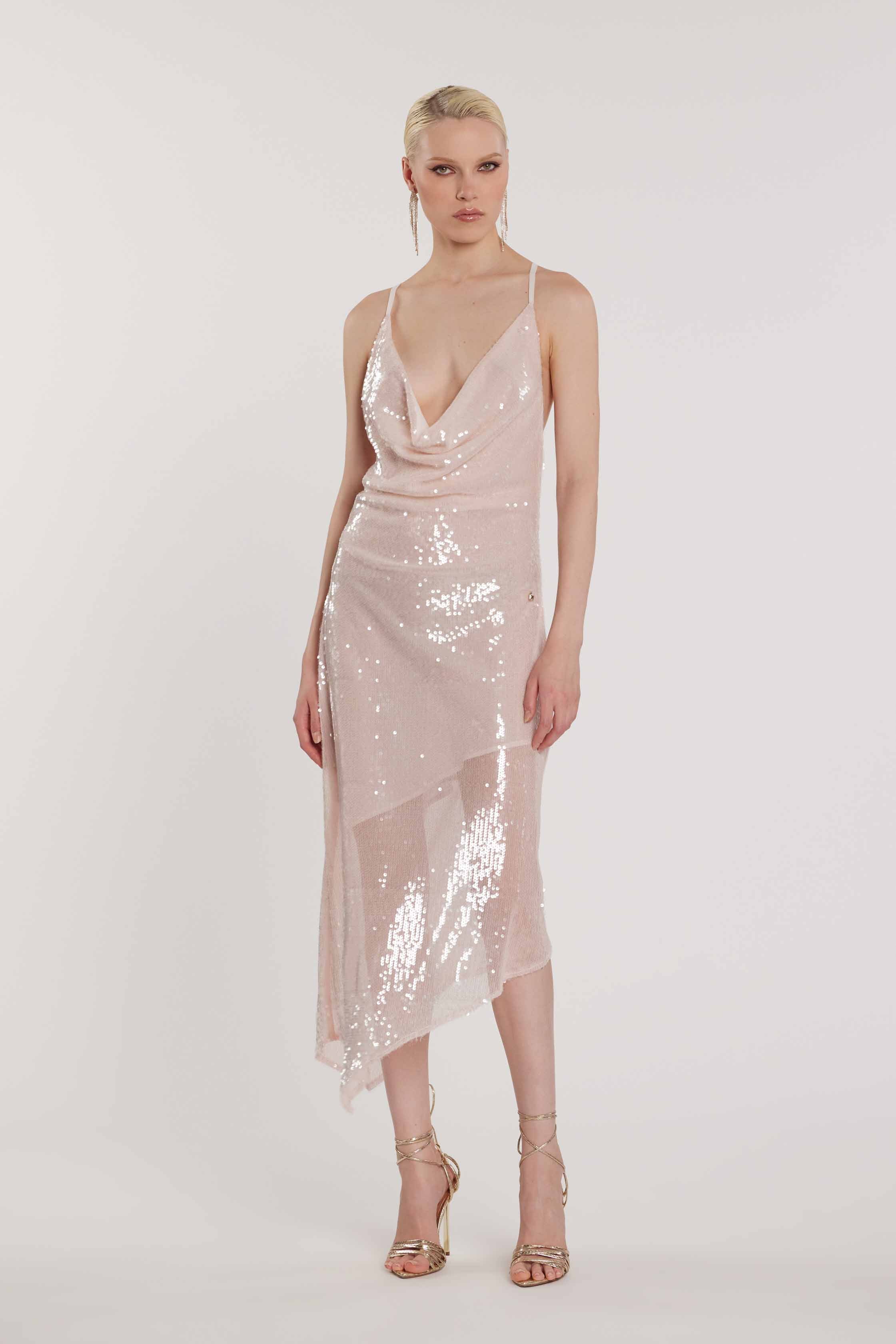 Abito BELOVED midi collo morbido top incrocio retro full paillettes
