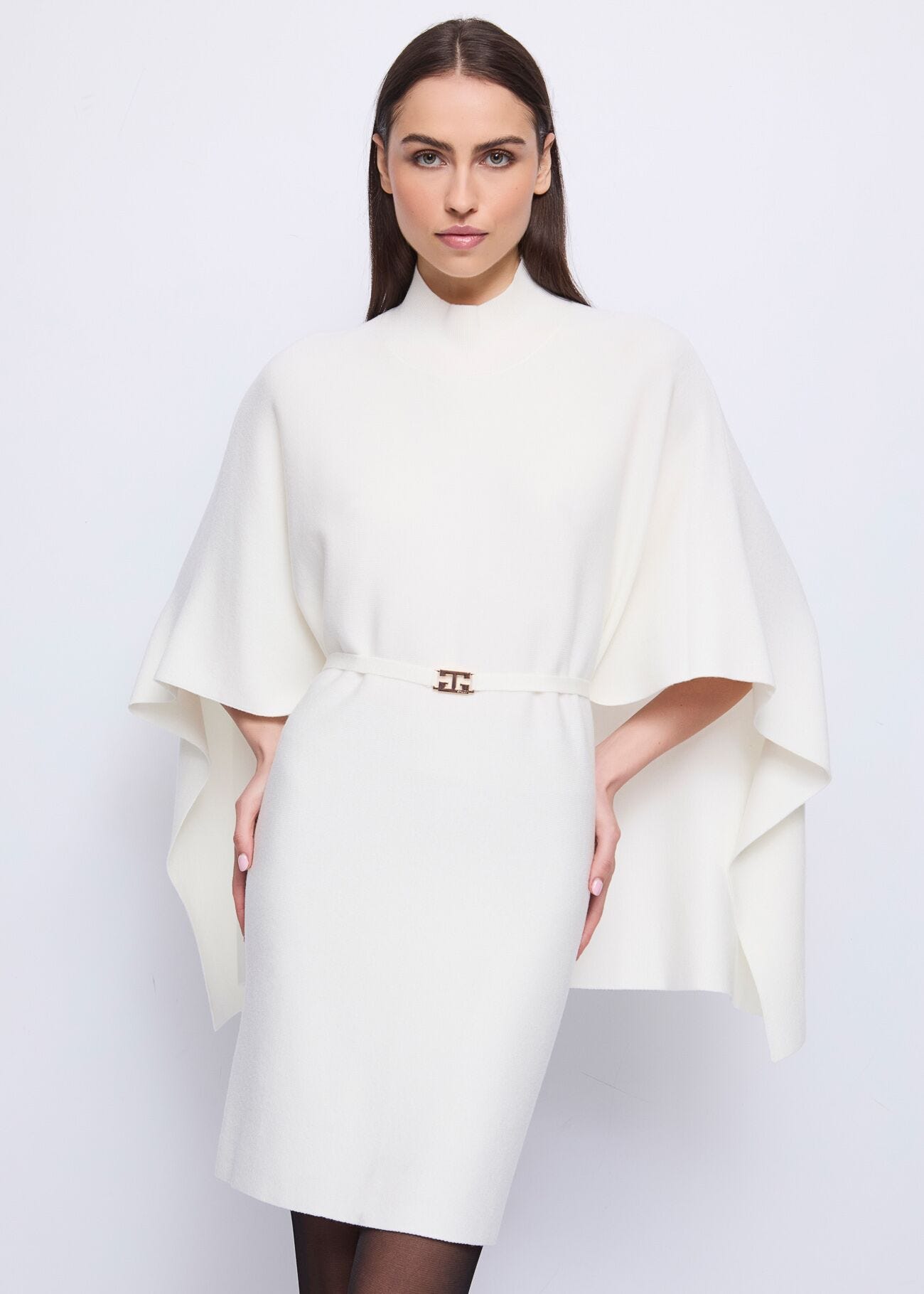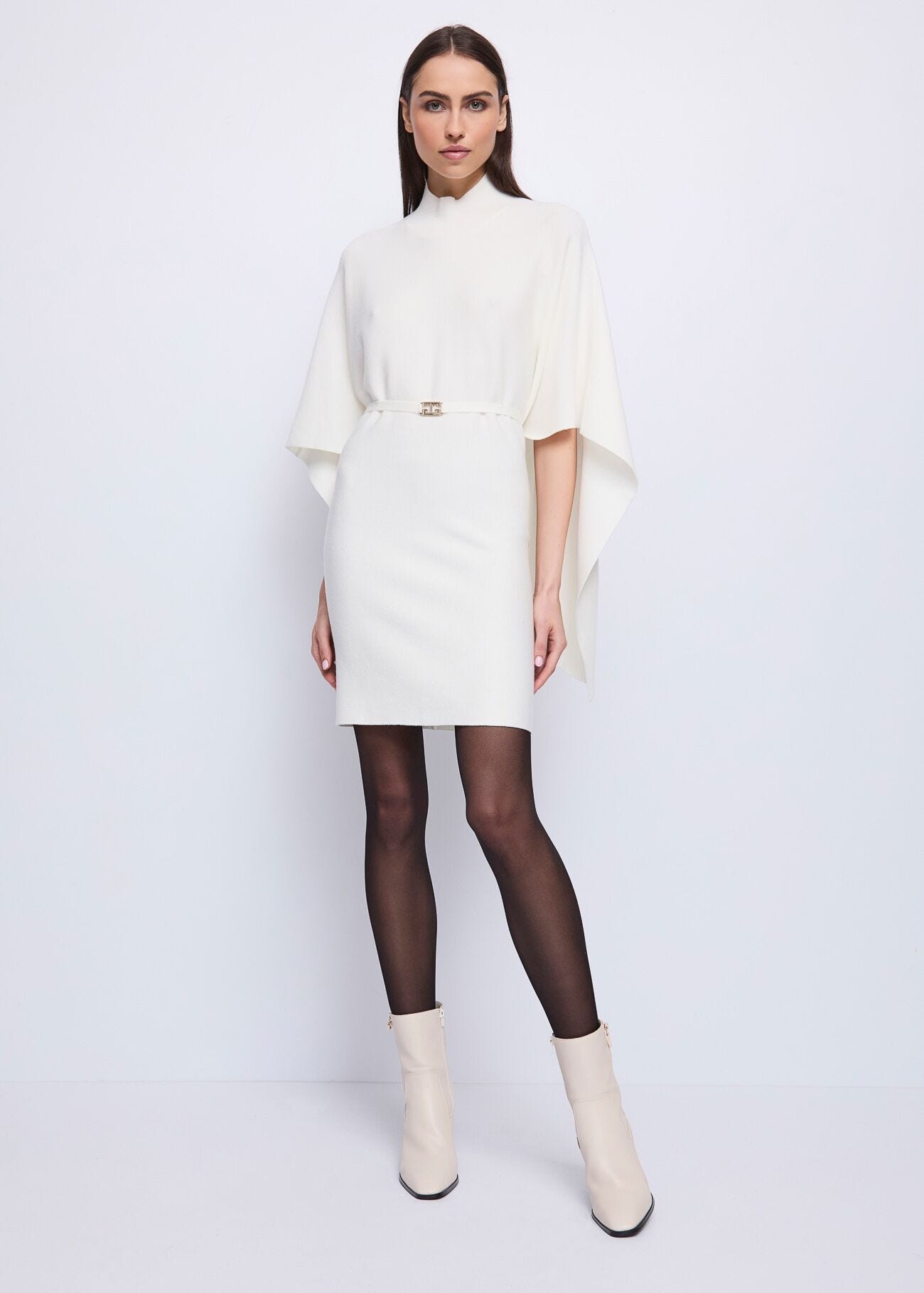Scegli l'abito corto in filato di misto lana con motivo a scialle e cintura con fibbia logata....