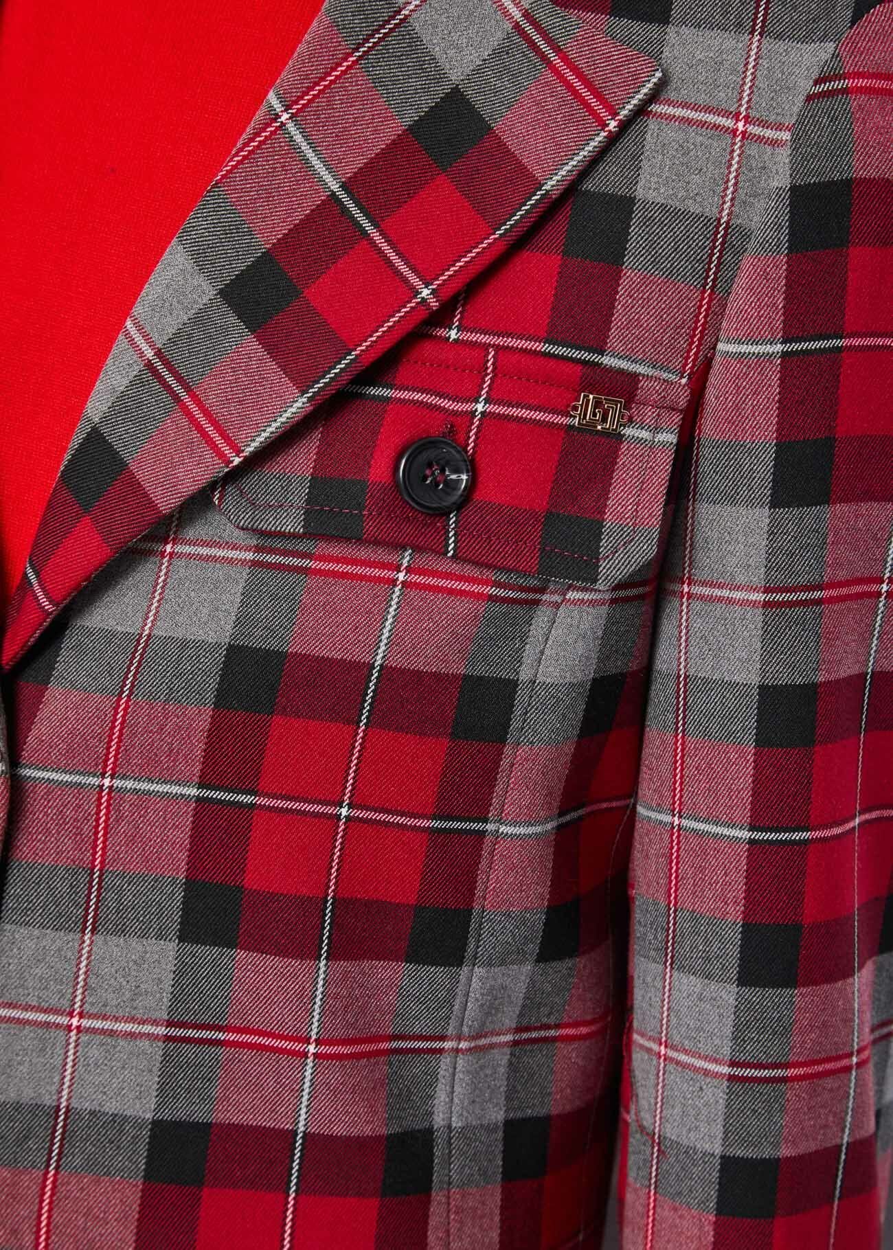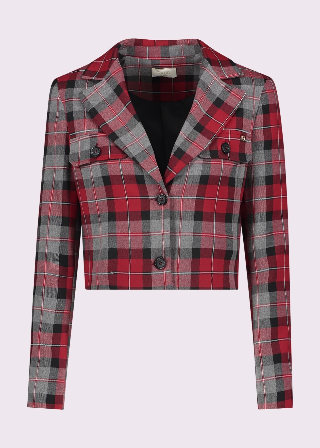 Scegli il blazer in misto viscosa elasticizzata con motivo check, taschini con patta e logo GJ in...