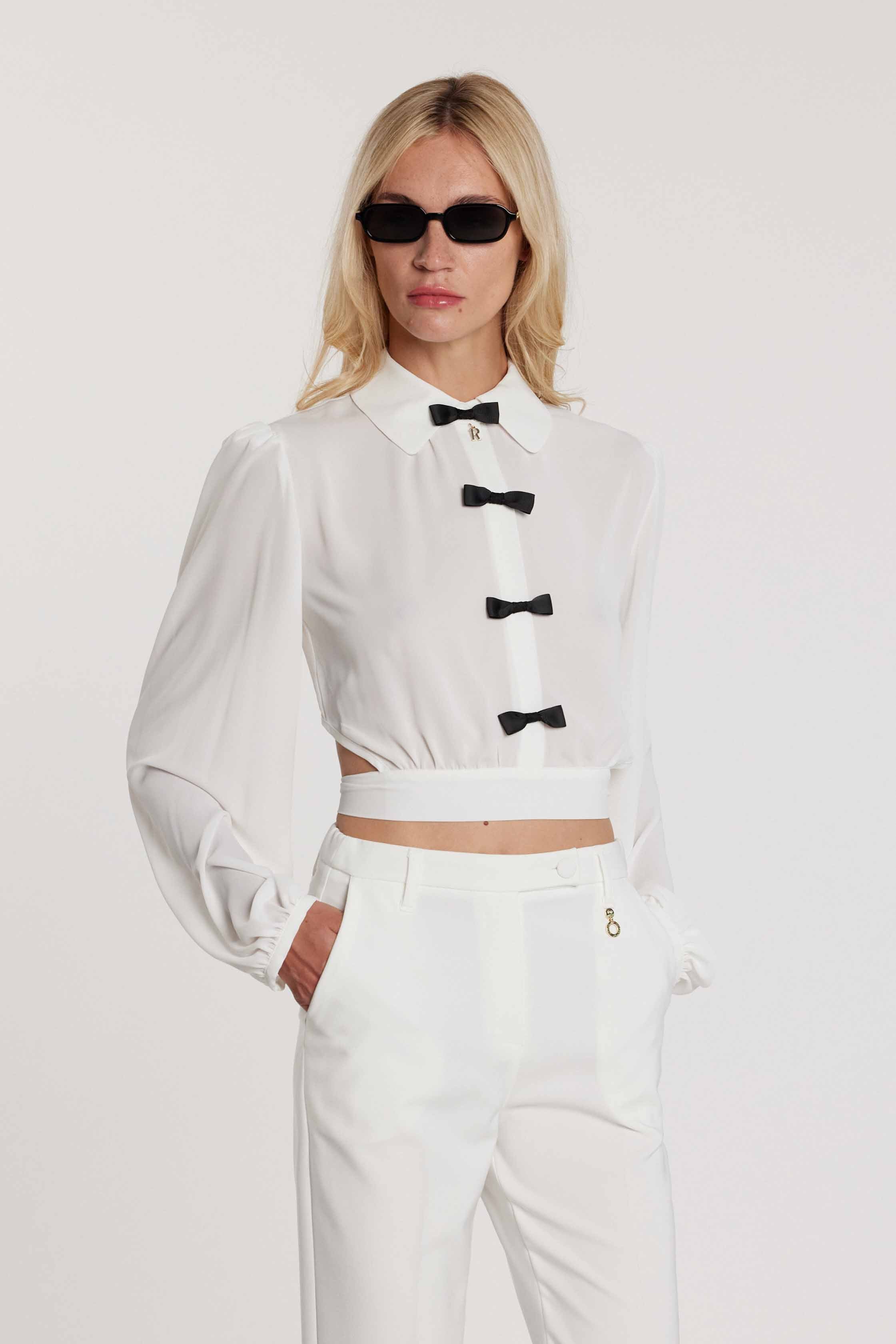 Blusa JANETTE corta maniche lunghe con fiocchi più ciondolo logo più apertura con pannello sulla schiena