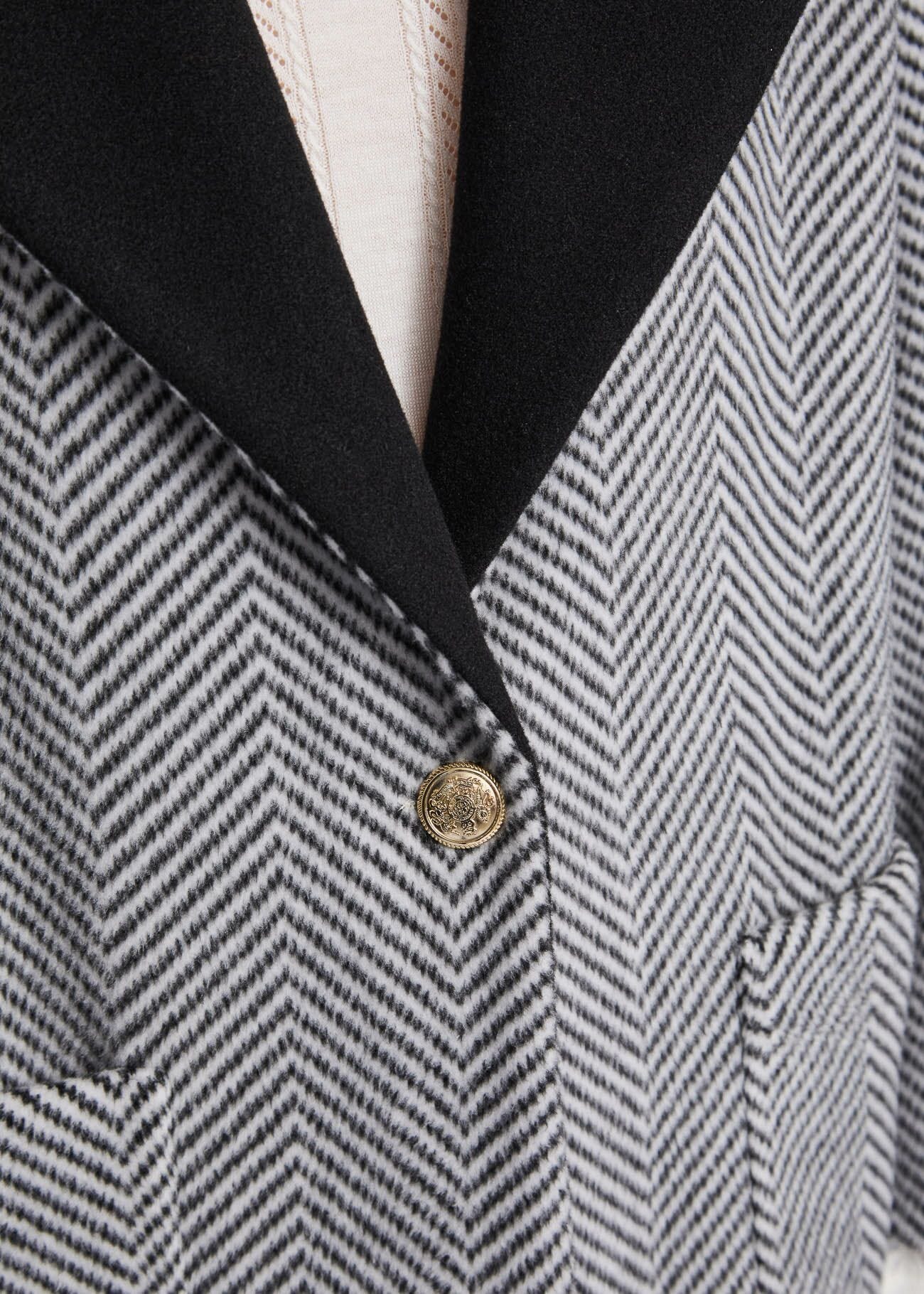 Scegli il cappotto in misto viscosa chevron con revers a contrasto, tasche e bottone dorato. Avvolgente e...