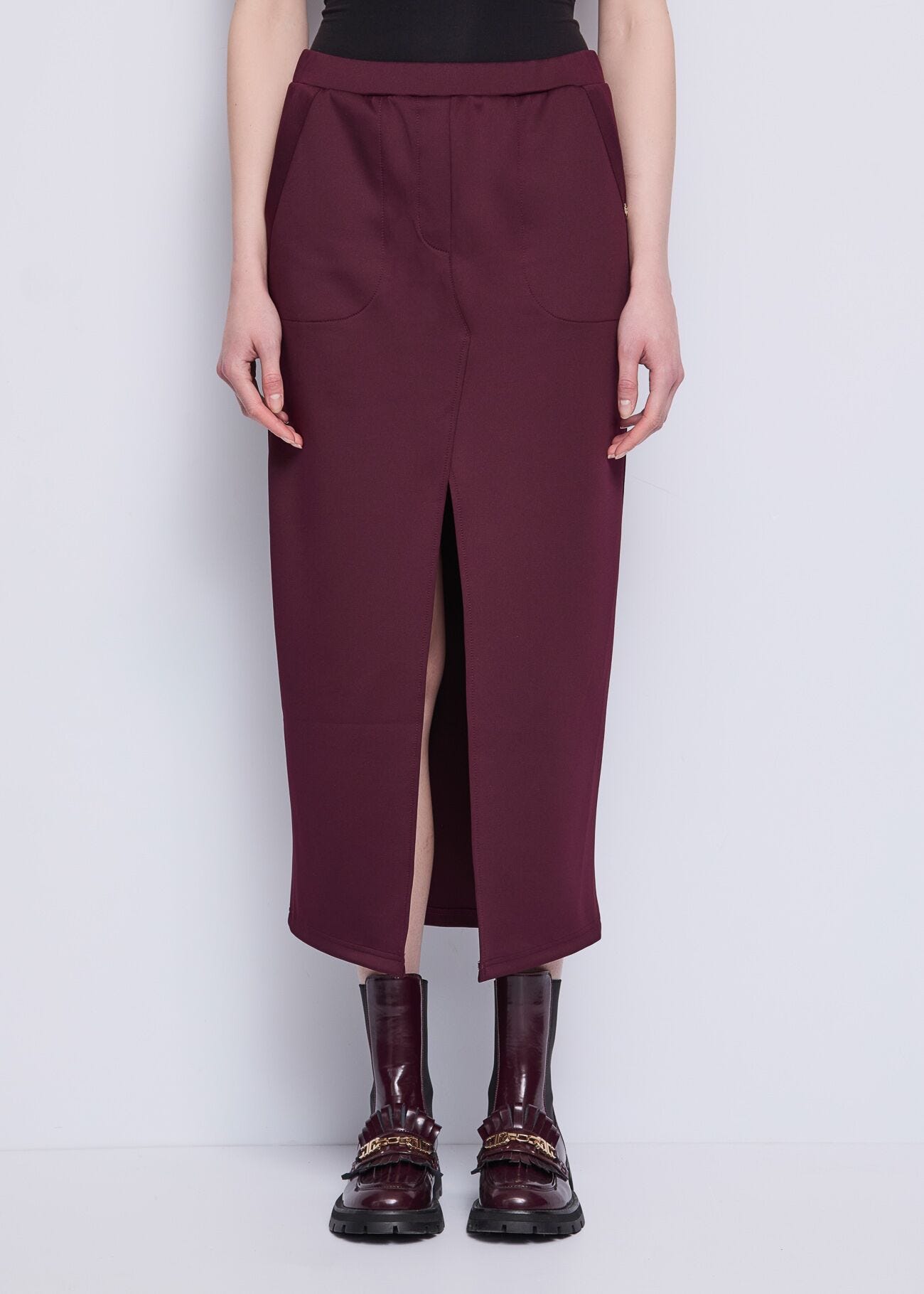 Scegli la gonna in scuba elasticizzata con elastico in vita, tasche e spacco sul davanti. Sensuale ed...