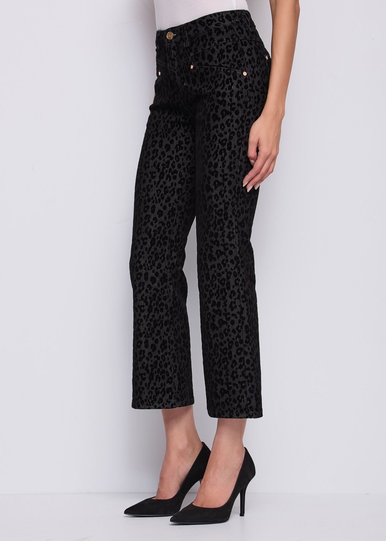 Scegli i jeans flare cropped in misto cotone elasticizzato con stampa flock animalier. Femminilità sofisticata per un...