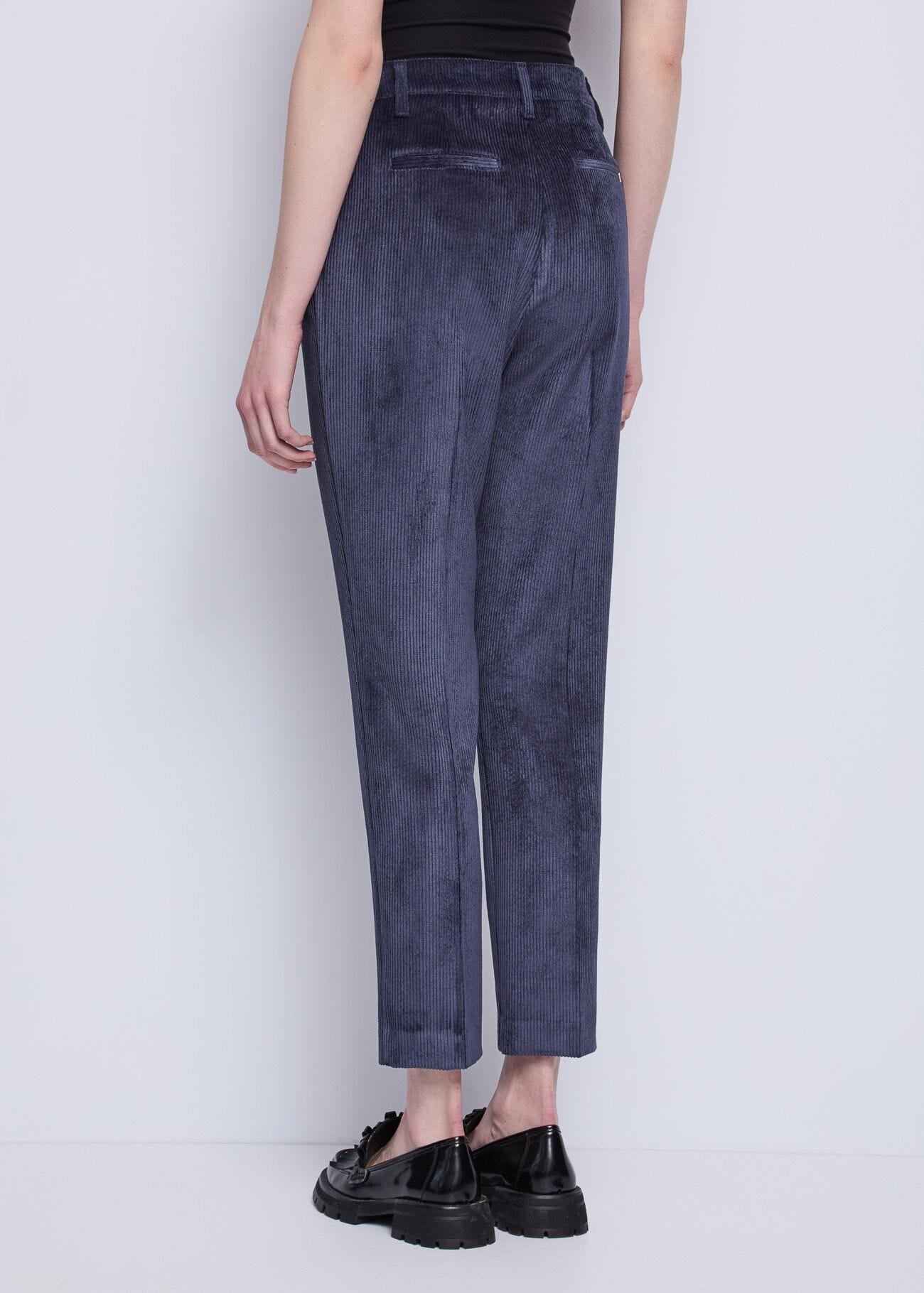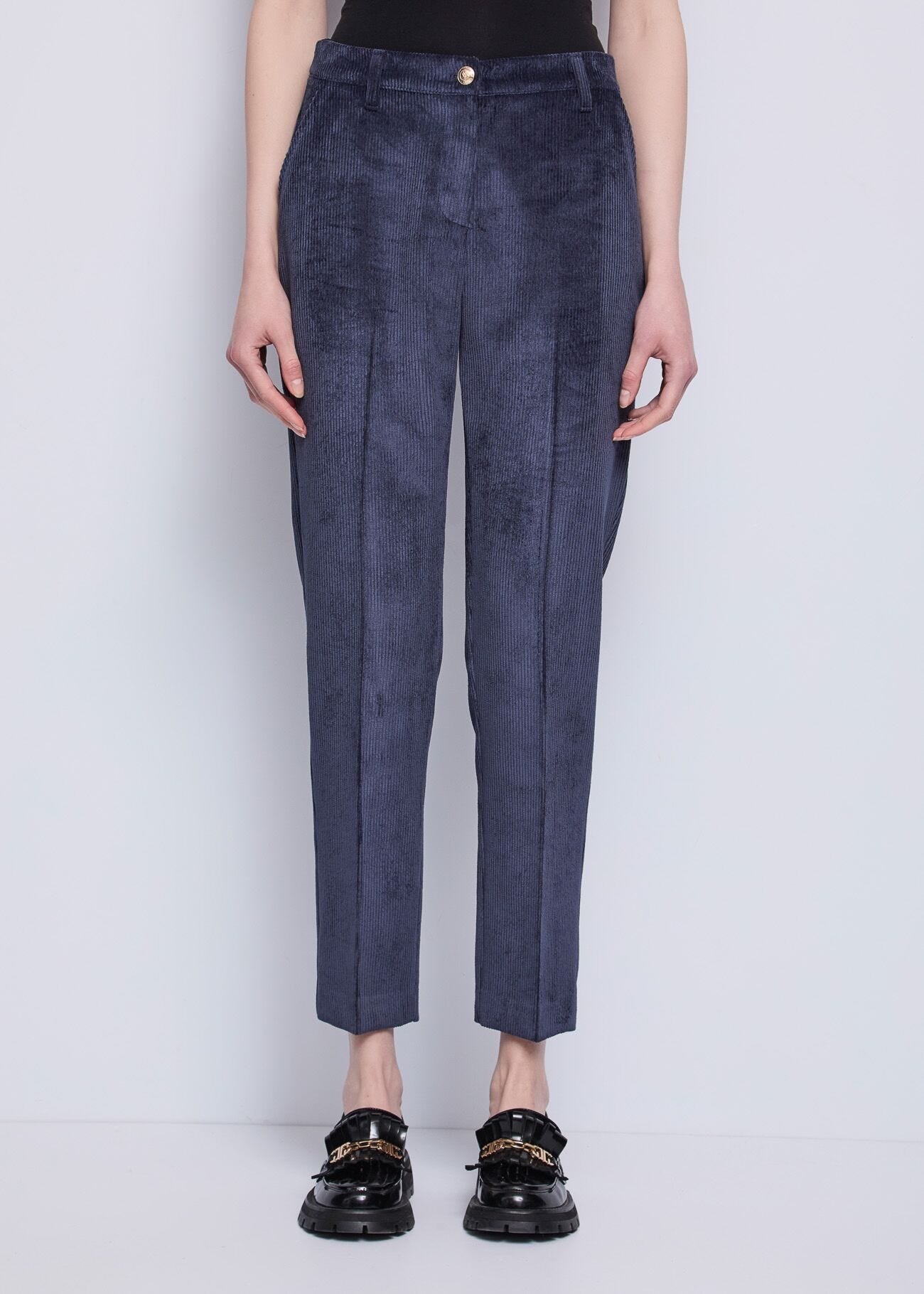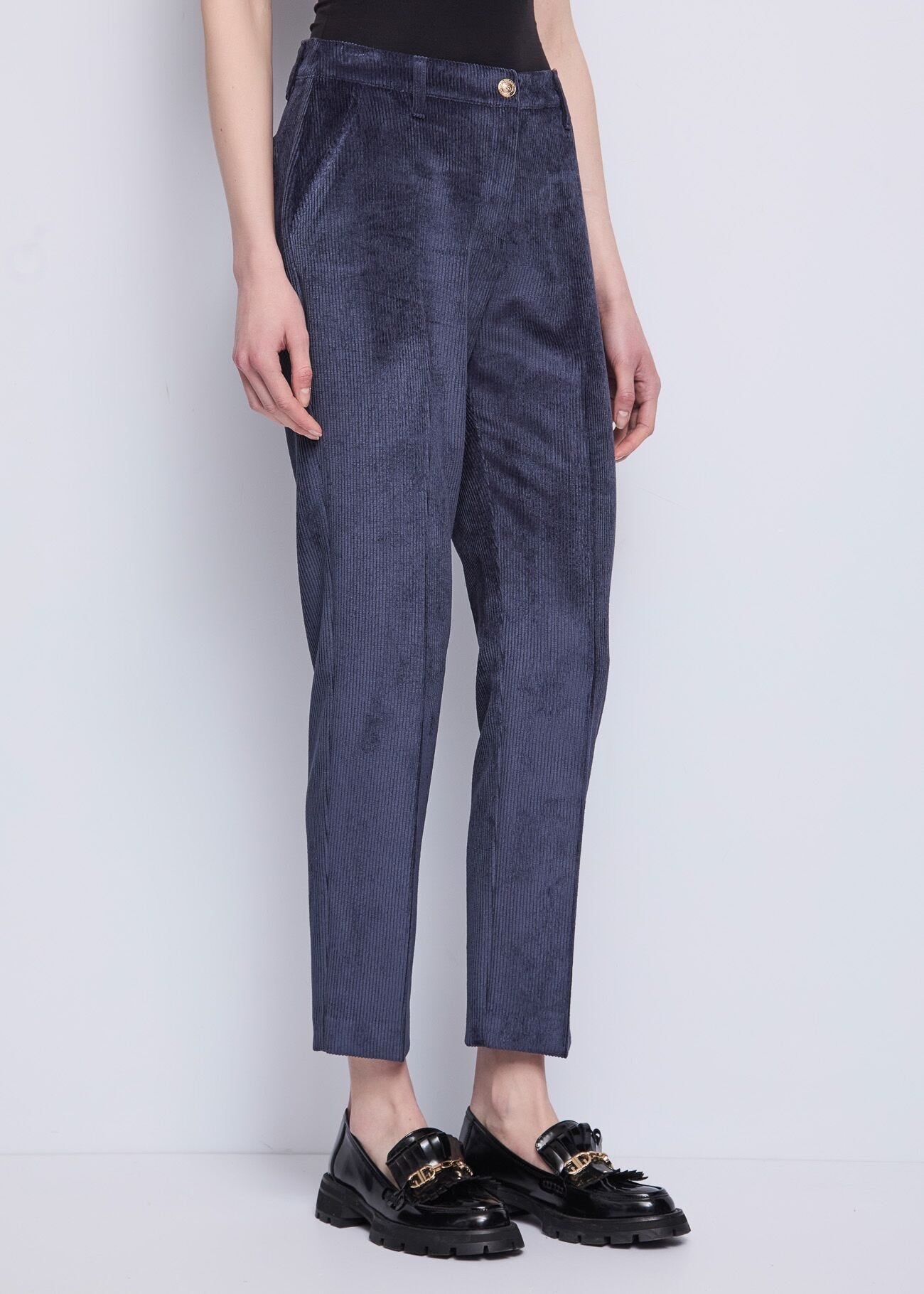 Scegli i pantaloni cropped a vita alta in velluto effetto used con piega stirata e logo GJ...