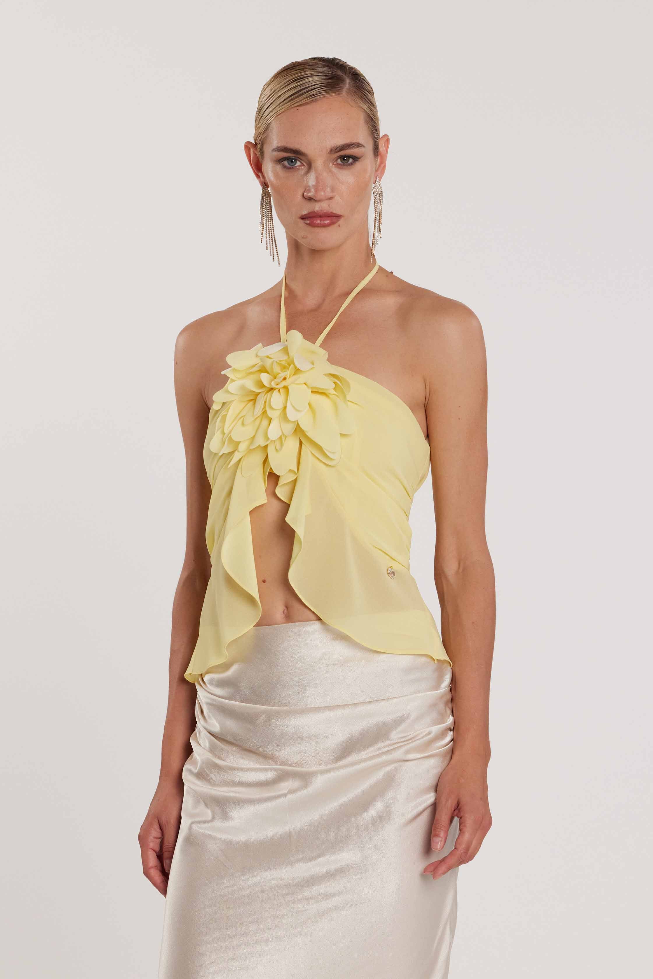 Top TENERAFY corto con gale più fiore spilla più bottoncini sul retro