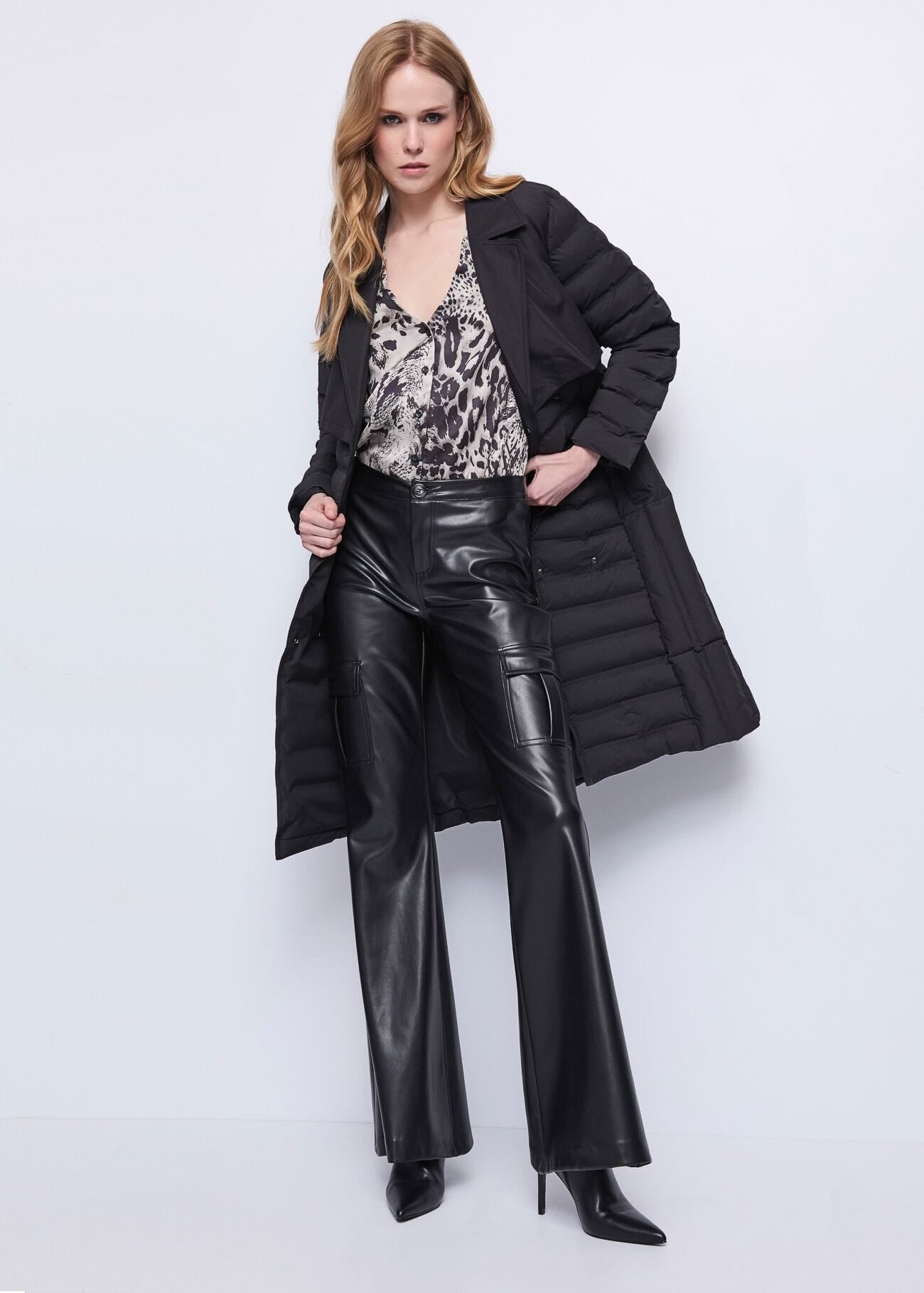 Scegli il trench doppiopetto in nylon imbottito e trapuntato con cintura coordinata. Caldo avvolgente per un look...